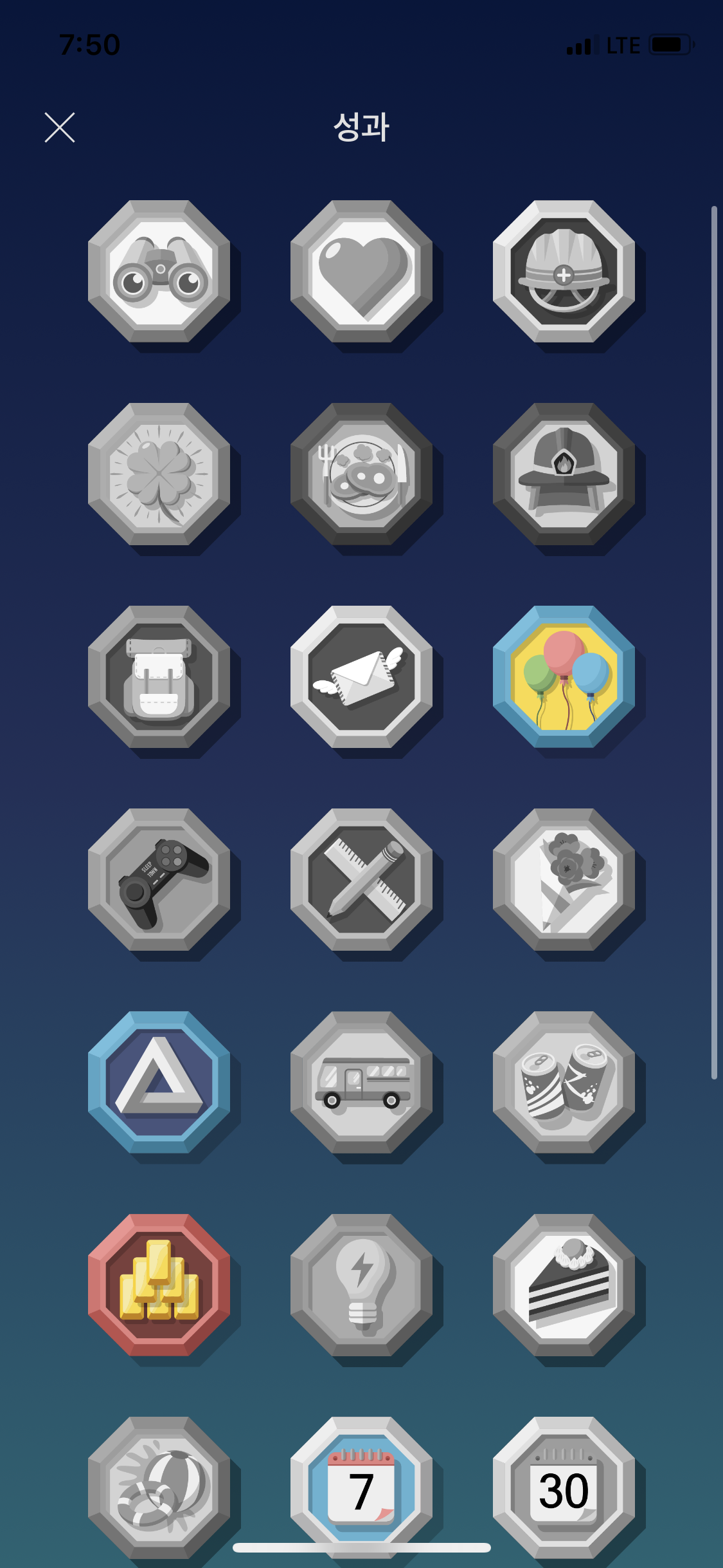 특정 미션을 완수하면 건물을 주는 성과 메뉴입니다. 저는 그렇게 많이 모으지 못했네요. ㅠㅠ
